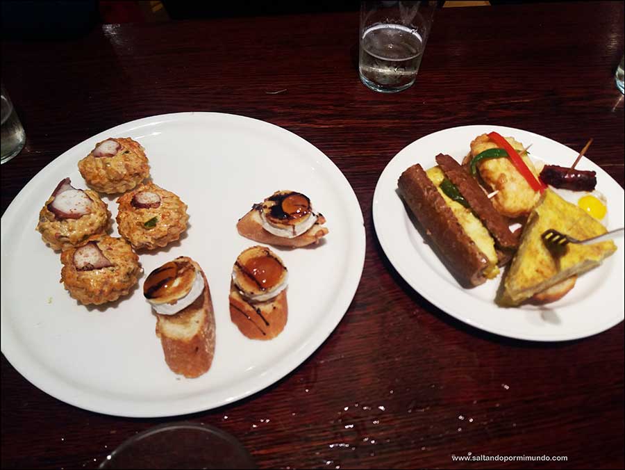 Y la sidra llevó a los pintxos. Era inevitable en una ciudad como San Sebastián no sucumbir a la maravilla gastronómica de la que con orgullo presumen y es que no es para menos, sus pintxos.