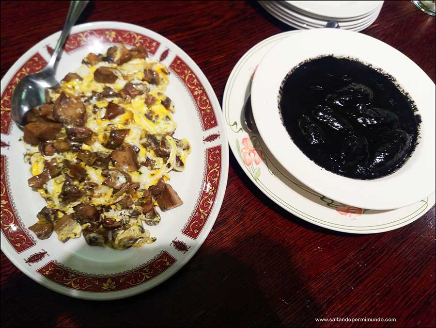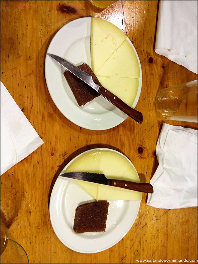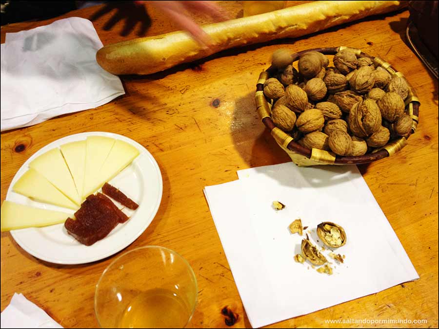 El menú es entorno a 28-30€ y lo que incluye además de la barra libre de sidra es: chorizos a la sidra de aperitivo, bacalao frito con pimiento y cebolla confitada, tortilla de bacalao y chuletón  a la brasa. De postre, queso Idiazabal con membrillo y nueces. Se me hace la boca agua sólo de recordarlo….