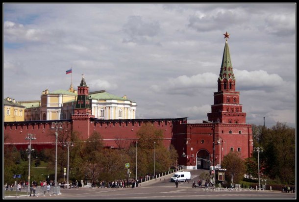 Llegamos a la parte trasera del Kremlin, donde termino ayer el tour gratuito, aunque ahora nos encontramos completamente al otro lado.