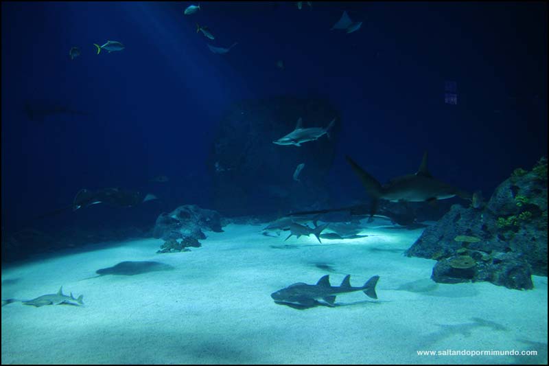 Lo más espectacular del acuario es el tanque donde se ha recreado una pasarela por la que cruzar tranquilamente, mientras sobre tu cabeza pasan tiburones martillo, rayas y morenas. Se trata del Ocean Tank, el acuario más grande de todos.