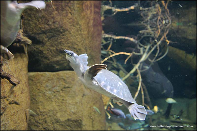 Podemos realizar una vuelta al mundo pasando por los diferentes hábitats, ya que también hay una zona tropical donde viven anacondas, cocodrilos y pirañas.