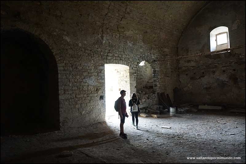 En la carretera N-260, sin ninguna señalización, se encuentra un camino de tierra y piedras que no nos dió mucha confianza. Es el acceso al pueblo. Nosotros dejamos el coche aparcado en un lateral. Bajamos los 300 escasos metros al pueblo y comenzamos a adentrarnos en su interior.