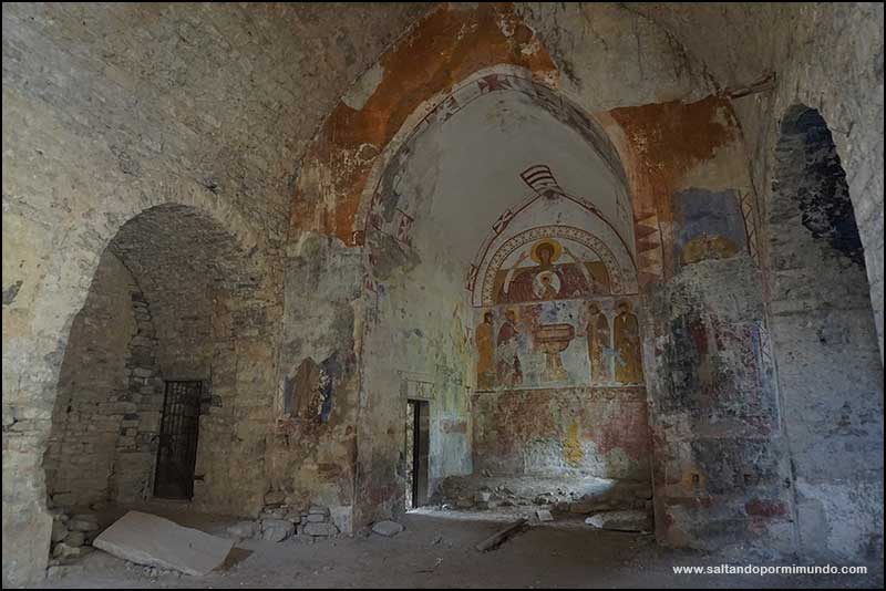Su interior, aunque vacío y medio en ruinas es espectacular con grandes mosaicos en su interior.