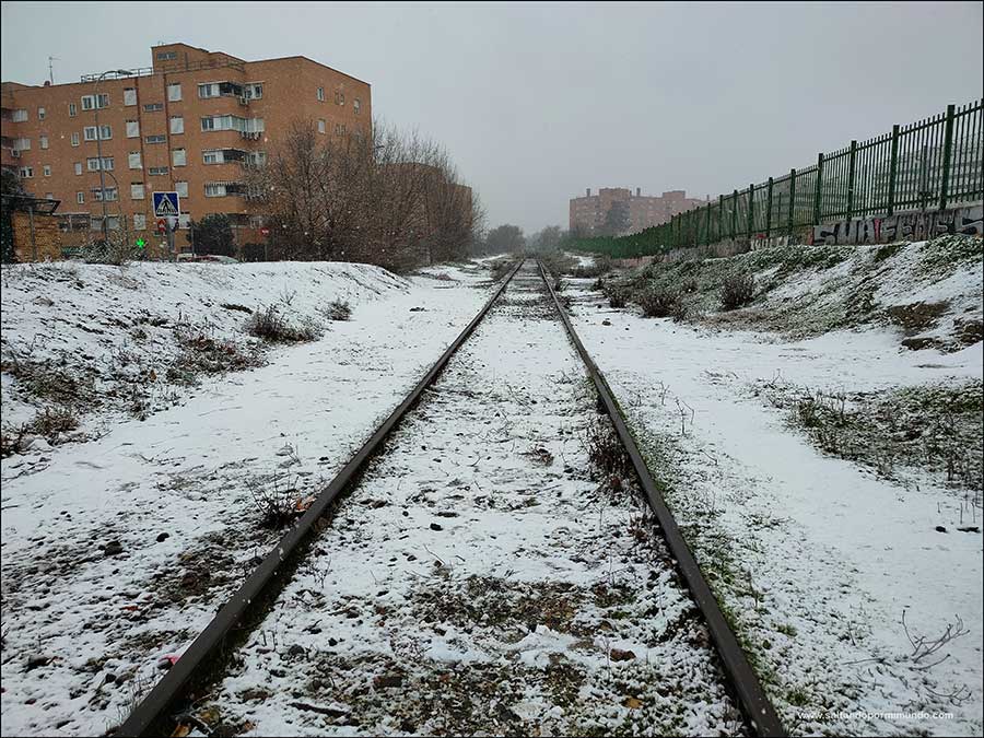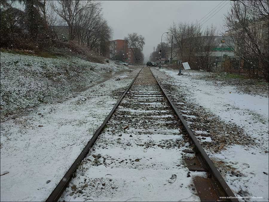 Las vías del tren, donde ayer celebrábamos los pocos copos de nieve que habían caído, hoy han desaparecido bajo un manto blanco.