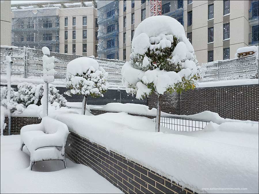 No hay un sólo centímetro de suelo que no esté cubierto de nieve.