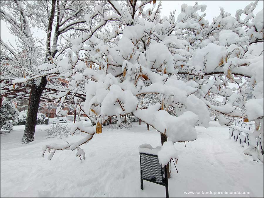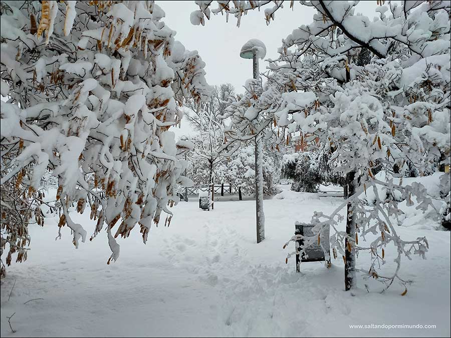 Lo que nos encontramos en el parque, también es increíble. Seguimos viendo los 20 o 30 centímetros de nieve por todas partes, pero con la tranquilidad del parque. El haber dejado los edificios atrás, nos hacen trasladarnos al Polo norte.