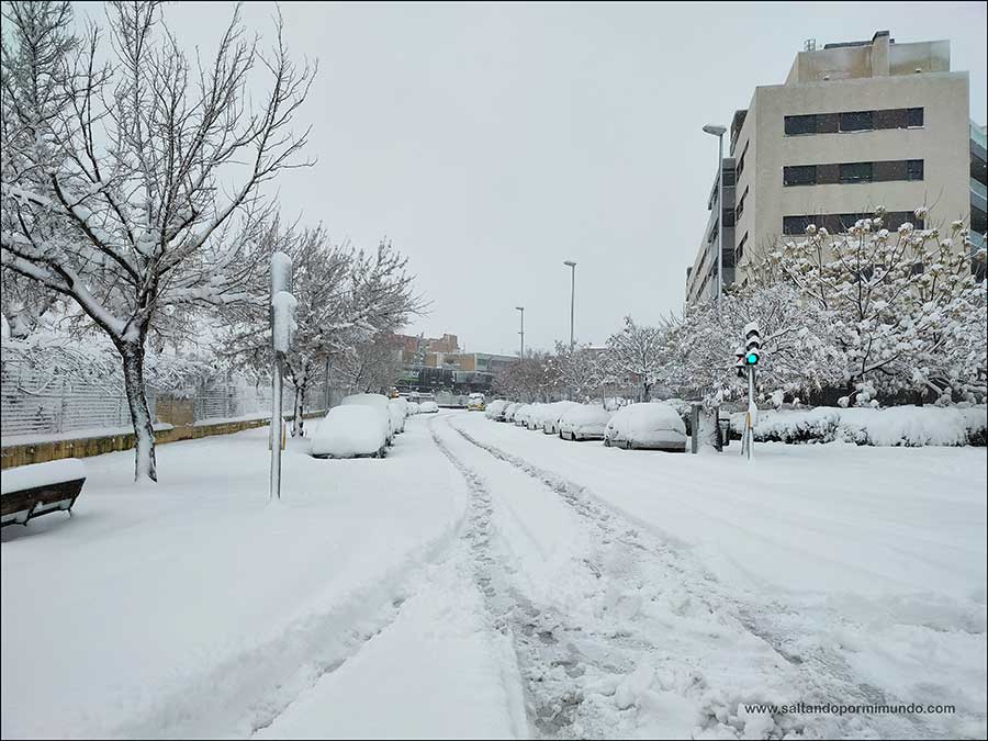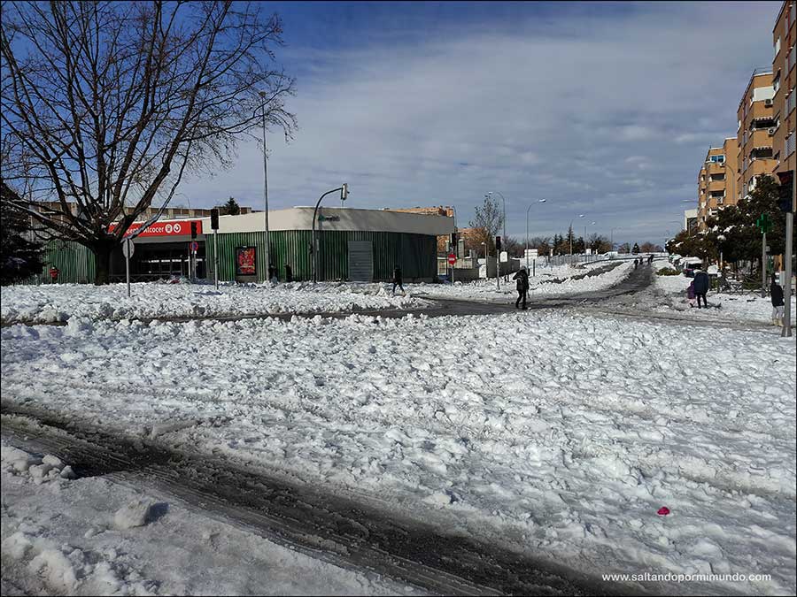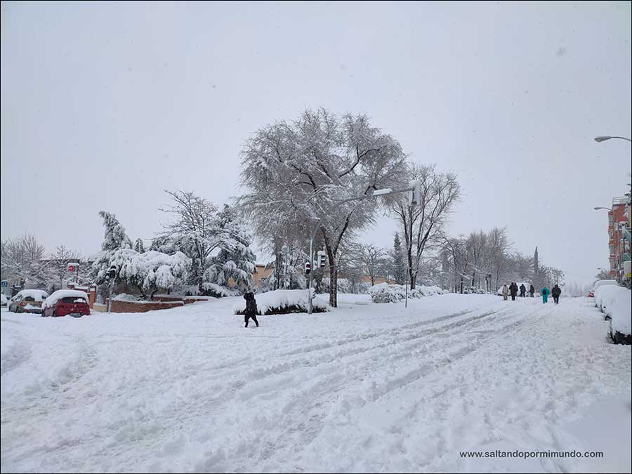 En nuestro paseo, llegamos a una Avenida bastante importante, que también está colapsada por la nieve, la Avenida de Andalucía. Aunque aquí ya ha pasado algún quitanieves, en un solo carril, donde algunos peatones nos atrevemos a a pasar, ya que los coches apenas pueden circular.