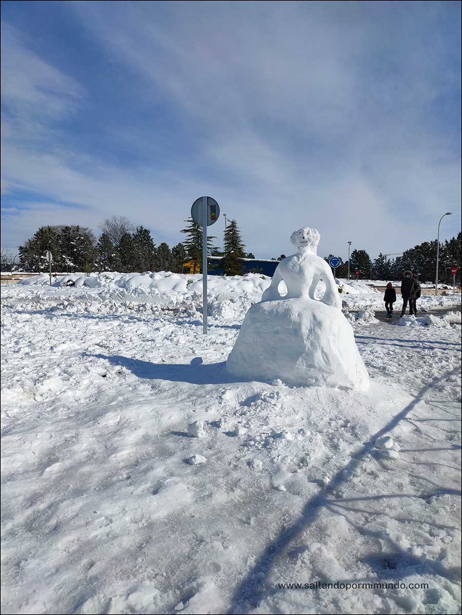 Aquí nos damos cuenta, de la creatividad que tiene la gente, nos encontramos una Menina hecha de nieve.