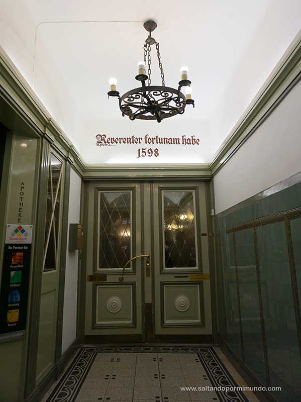 Paseando nos encontramos la Farmacia más antigua que se mantiene en funcionamiento desde 1598. Aunque es bonita, no nos dice mucho ya que hemos visto otras farmacias más antiguas y más impresionantes. Siempre creemos que cada ciudad hace ostentación de algo, siendo “la más antigua, la más pequeña, la más grande….etc.