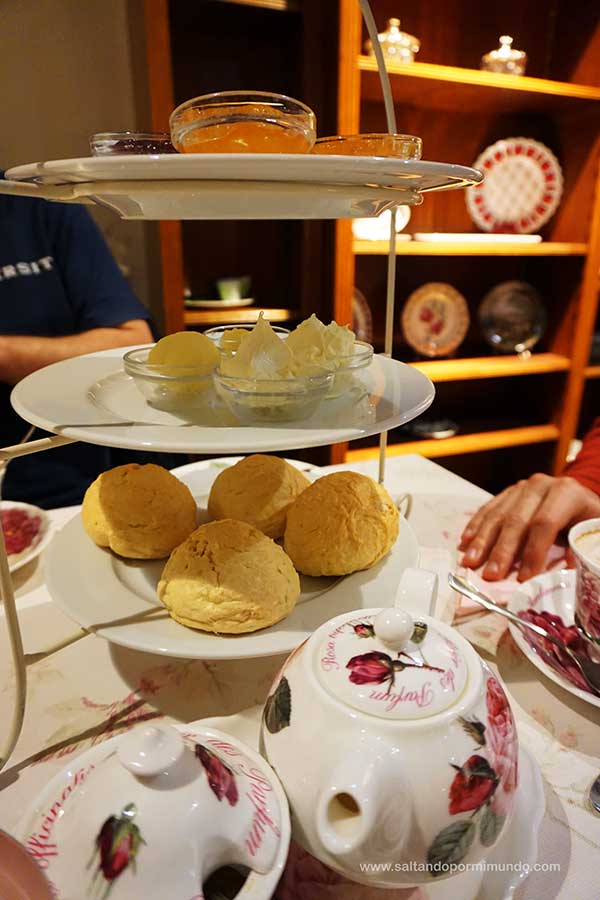 Las pastas típicas, son unos dulces ingleses denominados scones. son como un estilo a panecillos de mantequilla y muy suaves crujientes.