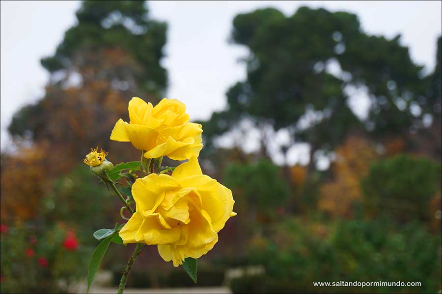 Aunque ahora no estamos en primavera merece la pena entrar en tu paseo por el Retiro, porque también merece la pena encontrar esas pequeñas rosas, valientes y seguras que florecen de cara al invierno y resisten tempestades, mientras todos los árboles de alrededor se van tornando amarillos, marrones y ocres.