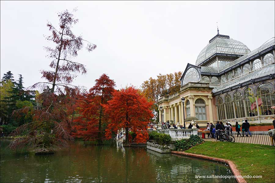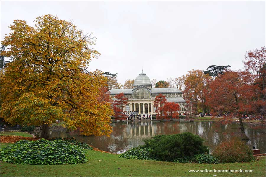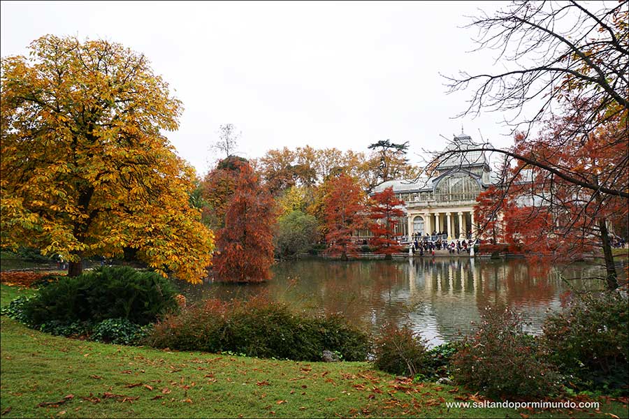 Aunque hay mil lugares de los que disfrutar del Otoño en el Parque del Retiro, el mejor y más fotogénico es desde el Palacio de Cristal.