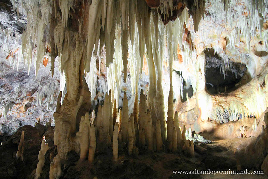 Tienen más de tres millones de años y en ellas podemos encontrar estalactita, estalagmitas, coladas y mil cosas más. El Gran Salón ocupa las de 10.000 metros cuadrados. Ya quisiera yo un salón así en mi casa.