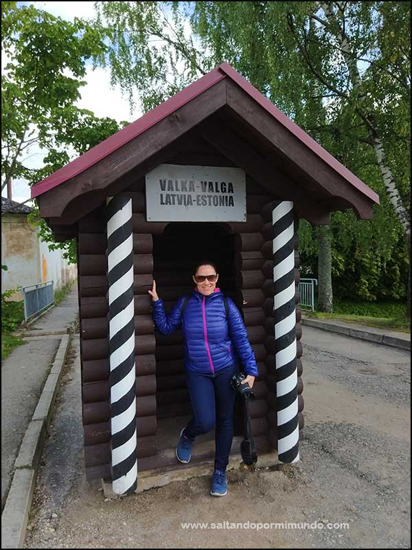 Cruzando la frontera entre Estonia y Letonia a pie