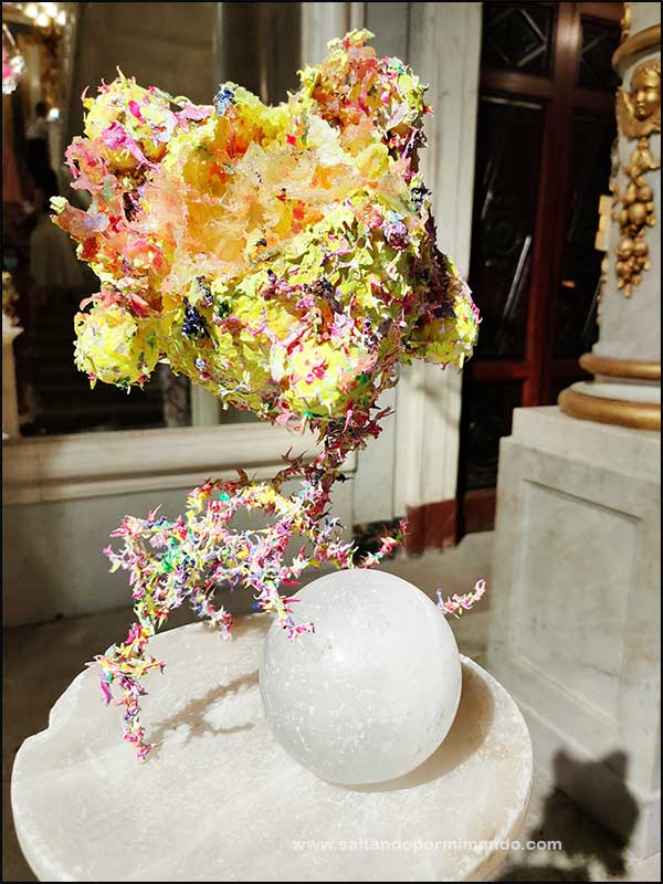 sería injusto no hablar de la expoosicon que hemos venido a ver, ya que gracias a ella hemos podido visitar este precioso Palacio, es obra del artista ucraniano Aljoscha y establece un diálogo entre tiempos.